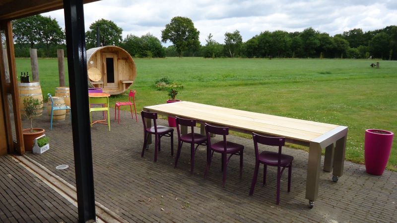 Geniet op ons terras met een prachtig uitzicht op het Achterhoekse "Coulissenlandschap" of bij minder mooie omstandigheden van de rust in de buitenkeuken "Beleving".